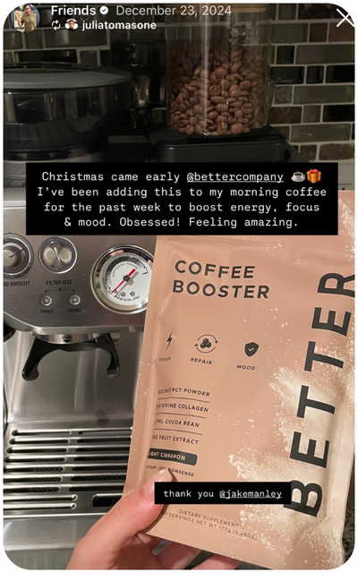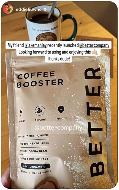 Better was specifically formulated to make your coffee taste great while increasing your energy, improving your focus, boosting your mental and physical performance – all while supporting your skin, joint, and muscle health.